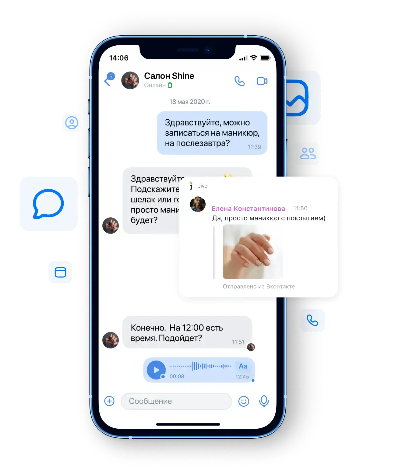 Отвечайте на запросы из ВК текстовыми и голосовыми сообщениями в приложении Jivo