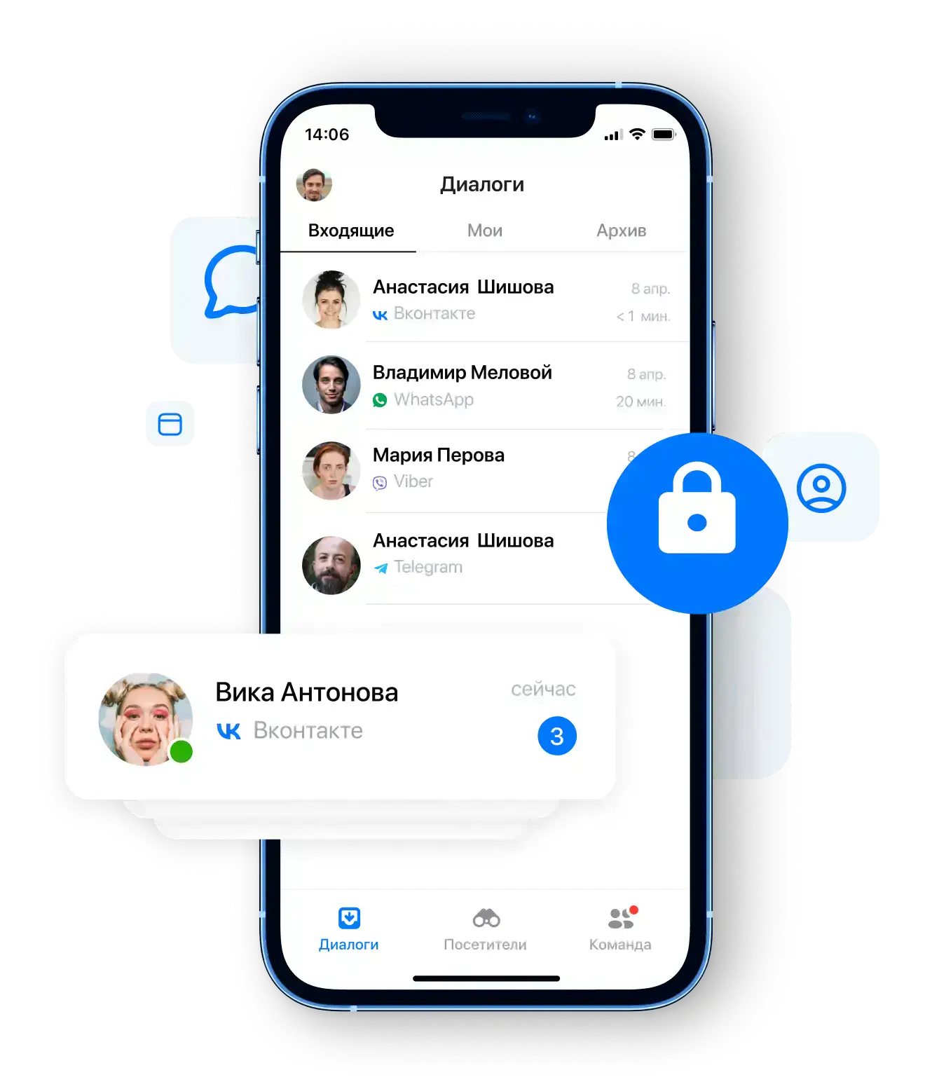 Больше не придется давать пароль от соцсети сотрудникам и переживать за безопасность аккаунта: вся переписка ведется из приложения Jivo.Подключить коллег или ограничить доступ можно в любой момент.