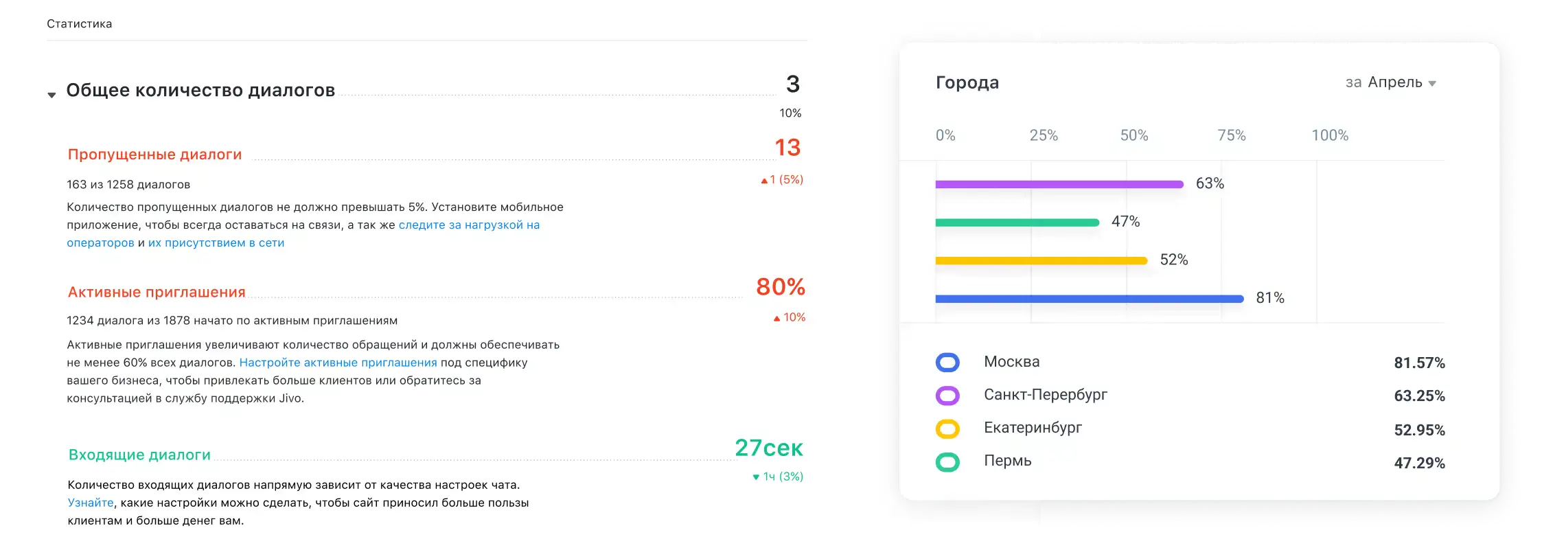 Отслеживайте скорость ответов, количество пропущенных диалогов