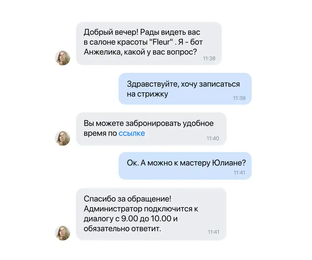 Сообщения клиенту будут приходить от имени группы во ВКонтакте.