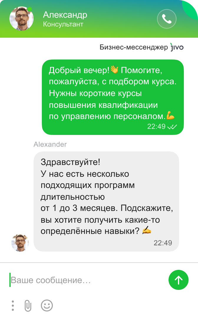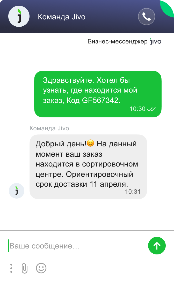 Работает во всех каналах связи: в чате на сайте, мессенджерах, соцсетях и в электронной почте