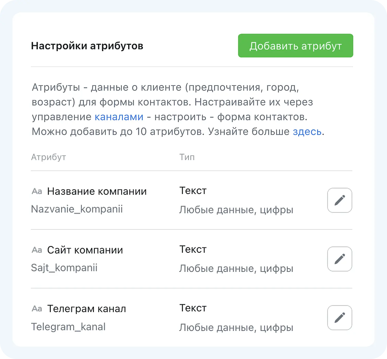 Подробнее о том, как настроить кастомные атрибуты в Jivo — в базе знаний.