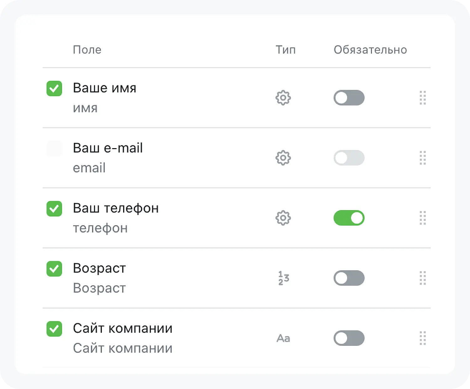 - Компаниям из сферы b2b будет полезно поле с ИНН компании.