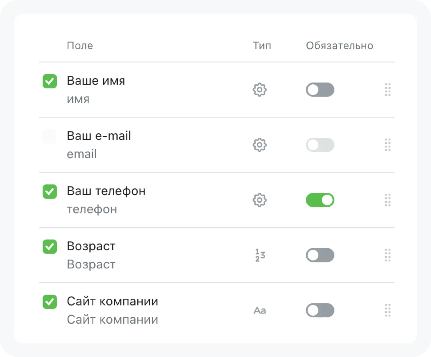 Это дополнительные параметры, которые можно запрашивать в форме контактов для более детального маркетингового анализа. Кастомные атрибуты расширяют профиль клиента, помогают лучше понять его потребности и персонализировать оффер, чтобы увеличить конверсию в покупку.