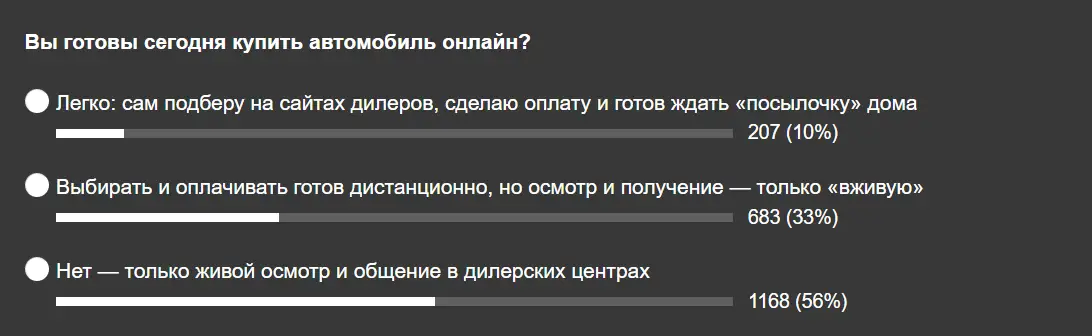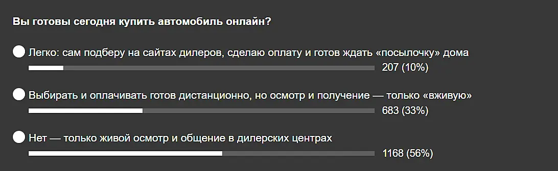 По данным Drom.ru, до 43% покупателей готовы выбрать и оплатить автомобиль дистанционно.