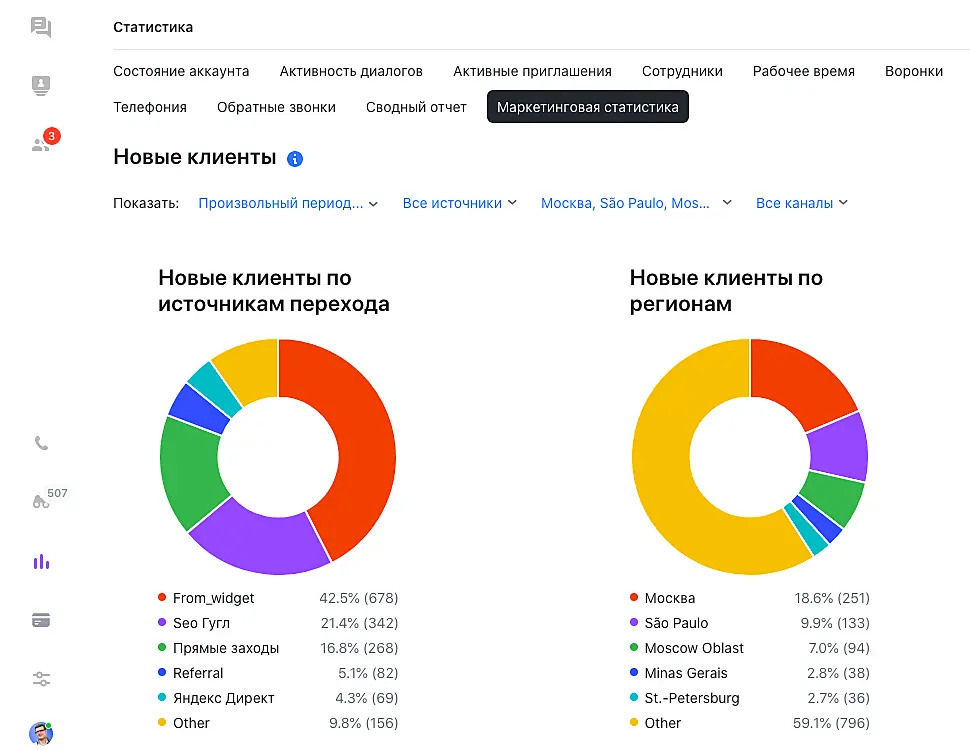 В обширной статистике Jivo появился еще один раздел — данные по новым лидам в чате. Здесь вы можете увидеть, откуда в чат приходят потенциальные клиенты.