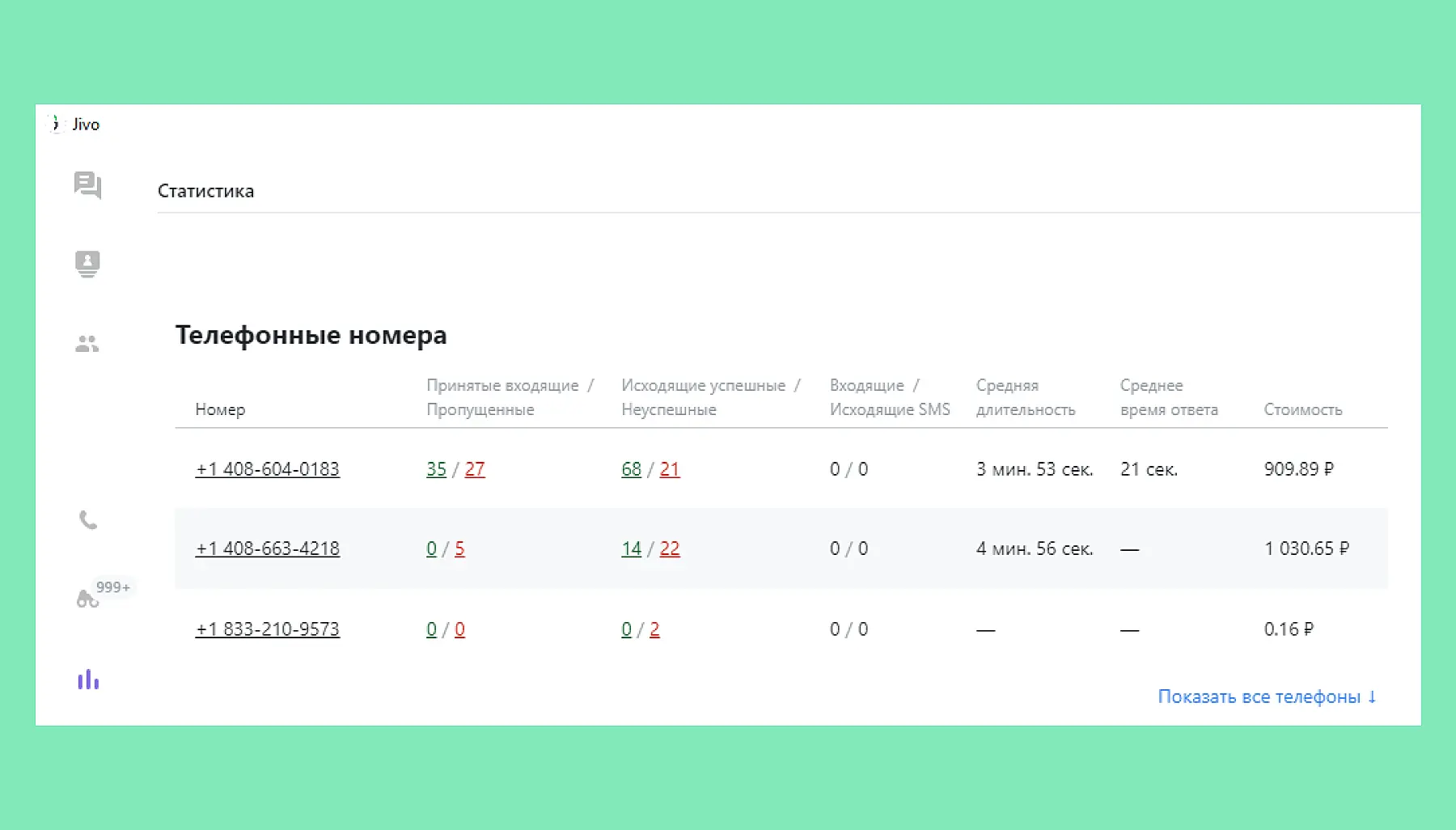 Посмотрите обновлённую статистику по телефонии