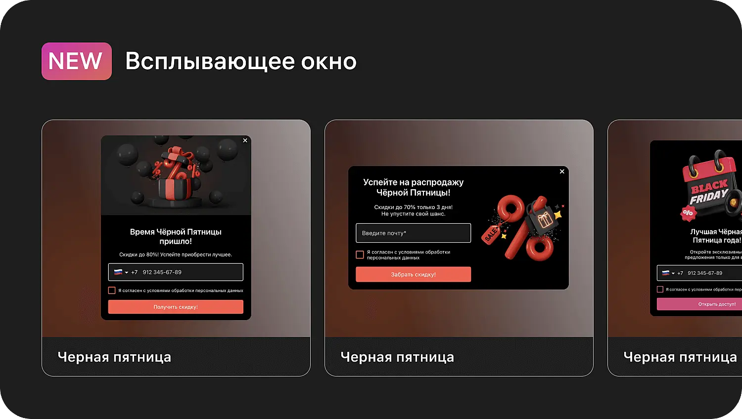 Оцените сами — так выглядят шаблоны попапов к Черной пятнице: