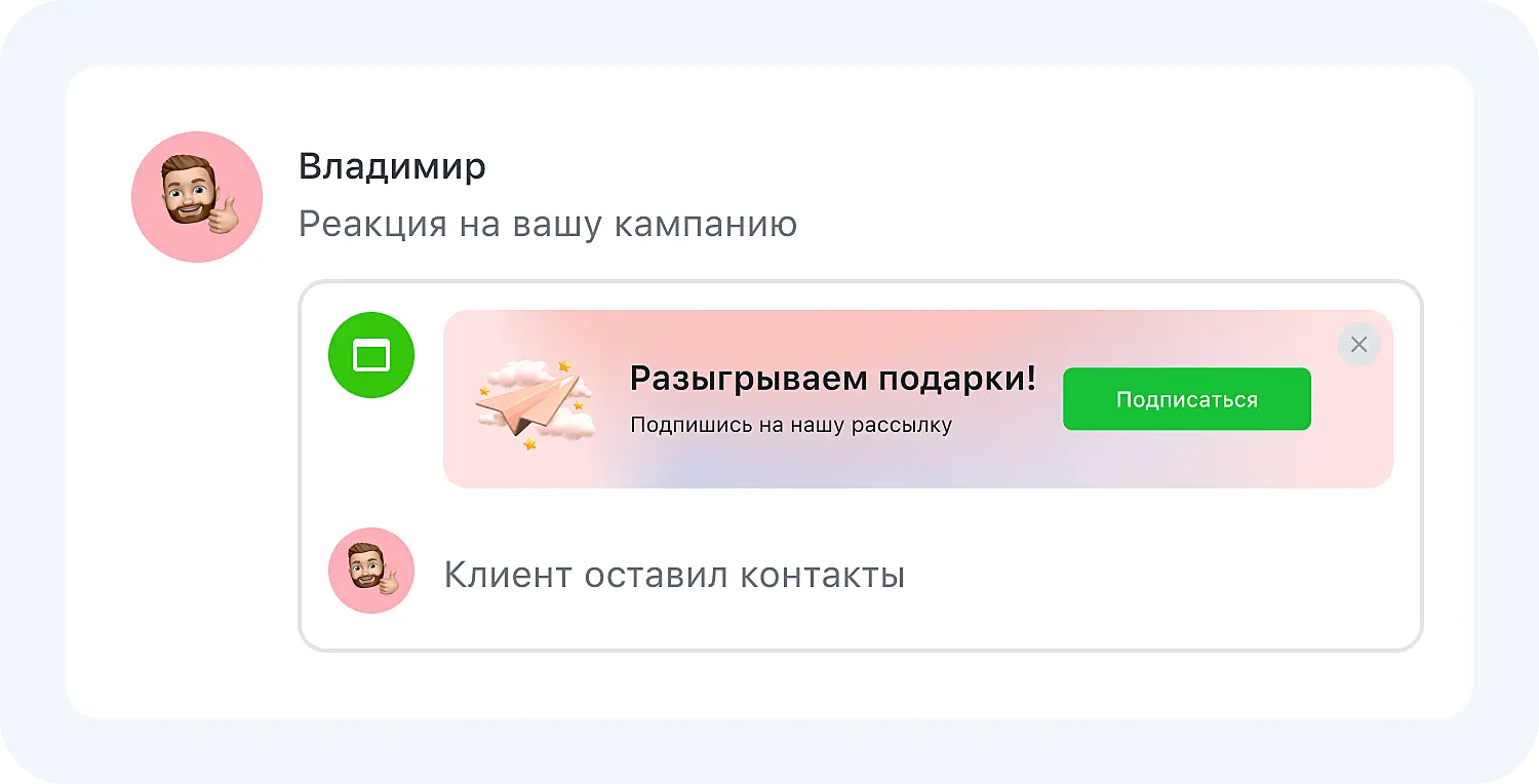 Больше ни один лид не останется без внимания. Теперь в настройках попапа можно подключить уведомления во Входящие: так вы сразу увидите реакцию на запущенную кампанию и сможете быстро связаться с «теплым» клиентом, чтобы закрыть продажу. Функцию можно подключить и для ранее созданных кампаний.