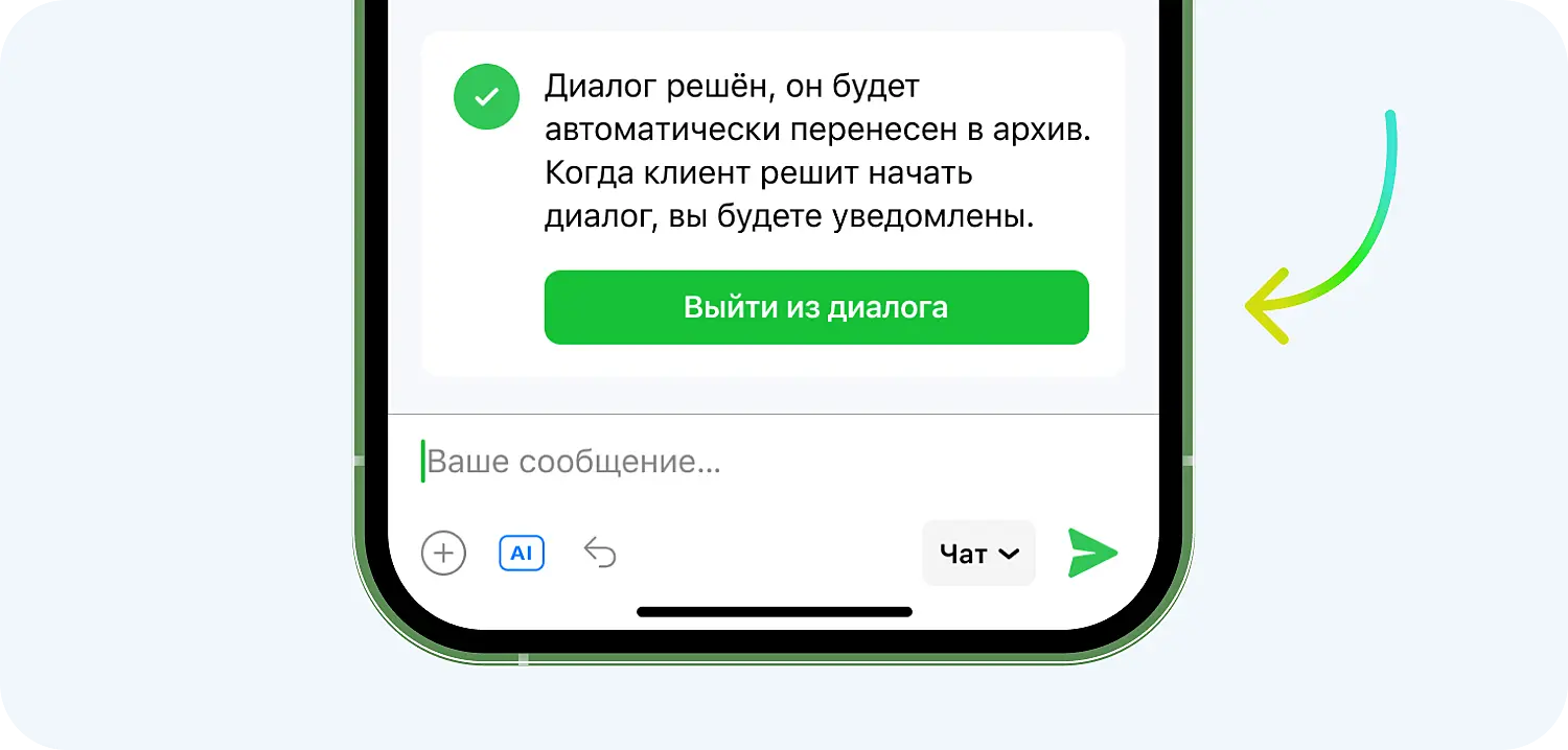 - Вопрос решен — раньше такой статус закрытия диалога был только в десктопной, а сейчас и в мобильной версии Jivo.