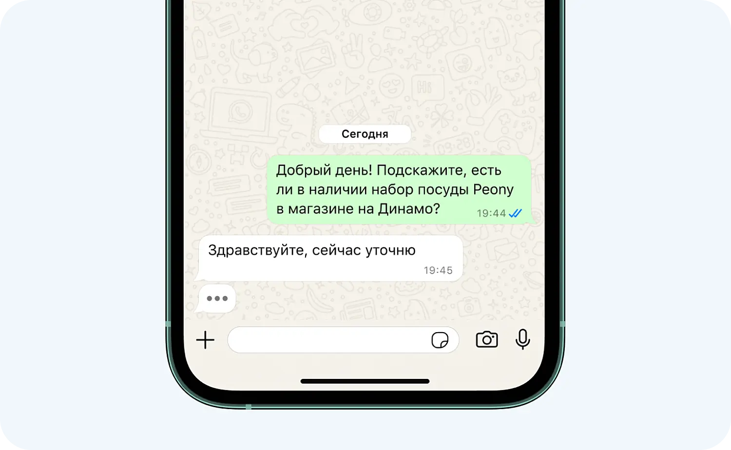 Нажимая на нее, пользователь попадает в приложение Ватсап* на своем телефоне или компьютере – там открывается диалог с компанией. Далее все общение происходит внутри мессенджера.