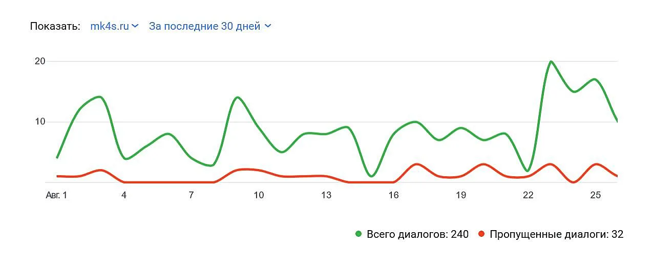 График показывает количество запросов от клиентов за 30 дней