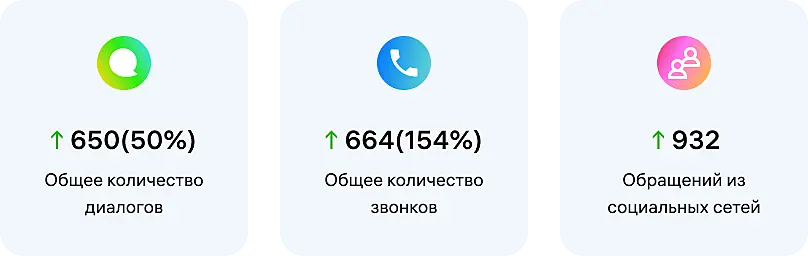 В декабре 2020 года компания подключила интеграции с социальными сетями и мессенджерами. Тогда это дало в среднем 900 дополнительных обращений в месяц.