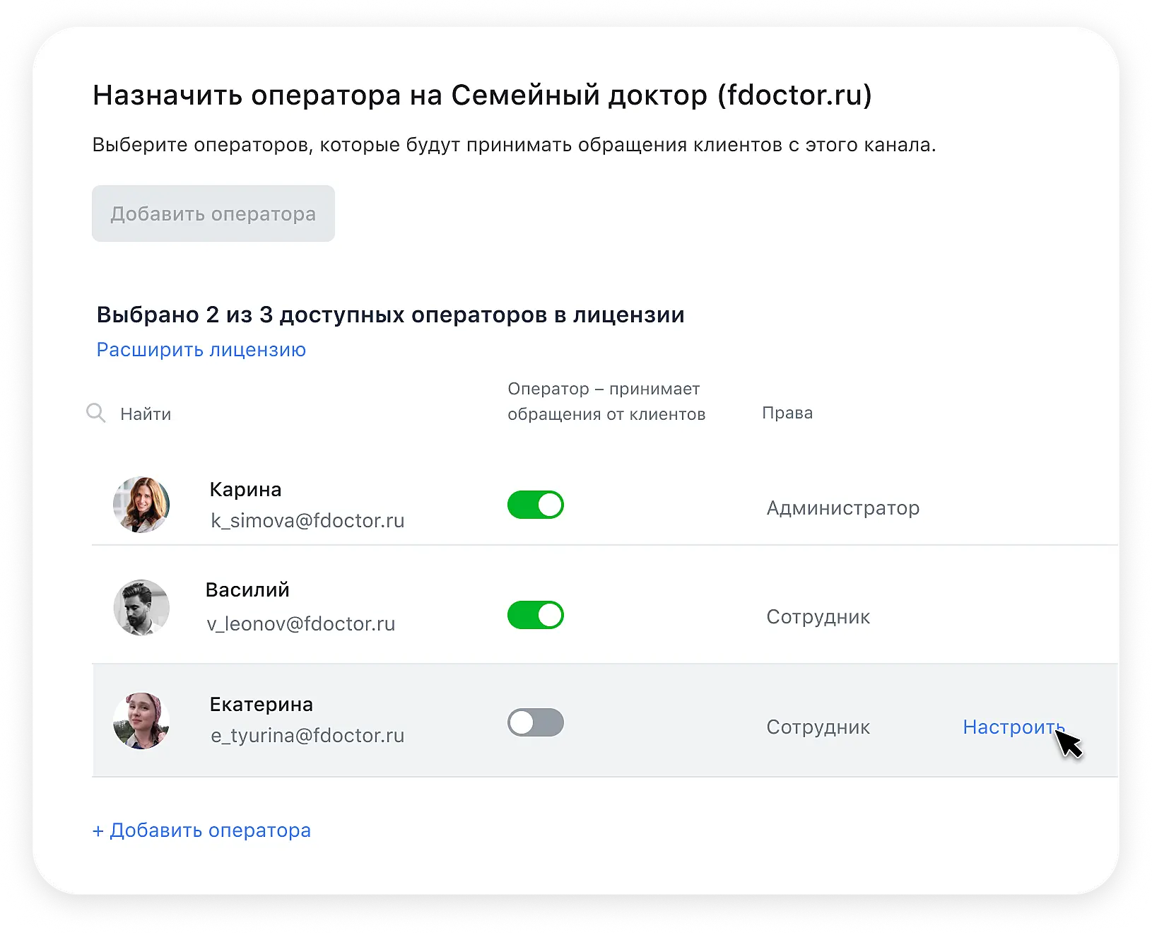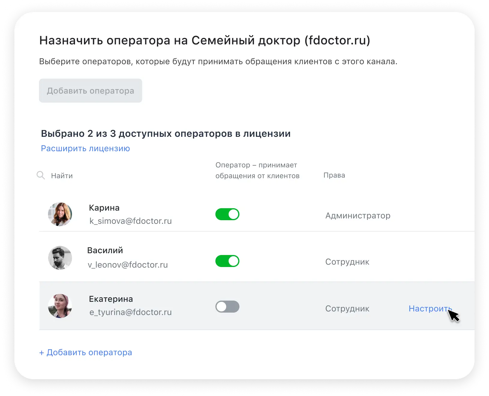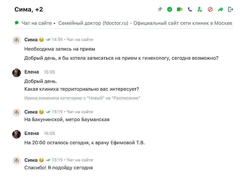 Для каждого отдела компании — свой канал связи, и это значительно облегчает работу с пациентами разных направлений. Сейчас с приложением работают 20 операторов.