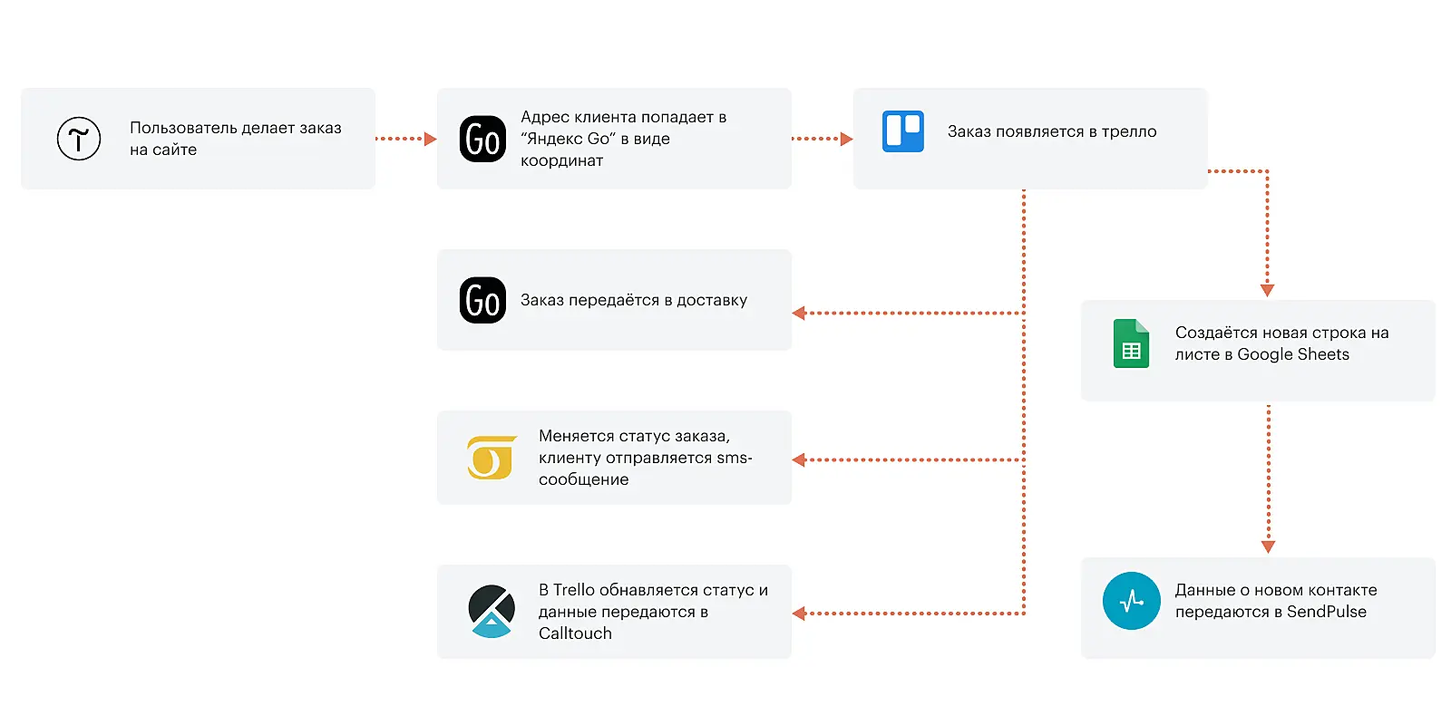 В результате в прямом эфире за 1 час Albato приняли заказ, организовали доставку, проанализировали статистику и создали программу лояльности.