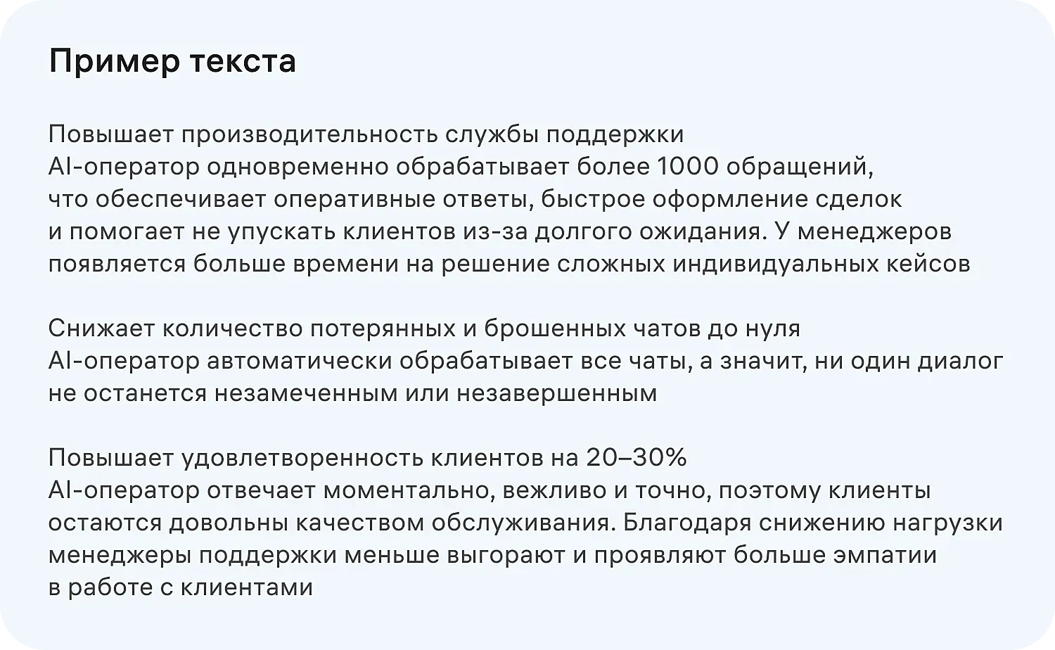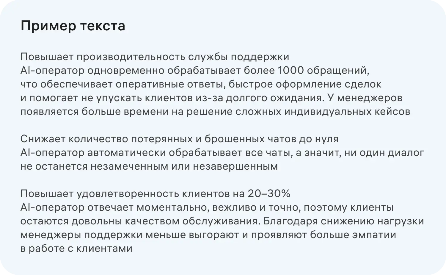 Искусственный интеллект справился с выделением ключевых акцентов жирным шрифтом, а фразы получились достаточно естественными.