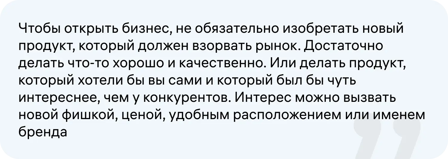 Александра детально рассказывает про конкретные этапы открытия первого локального бизнеса, а также перечисляет, как избежать самых распространенных ошибок при запуске своего дела. Например, читатели разберутся с: