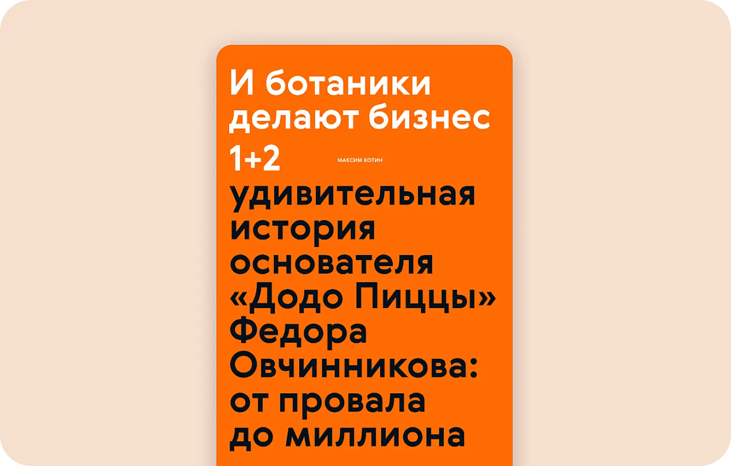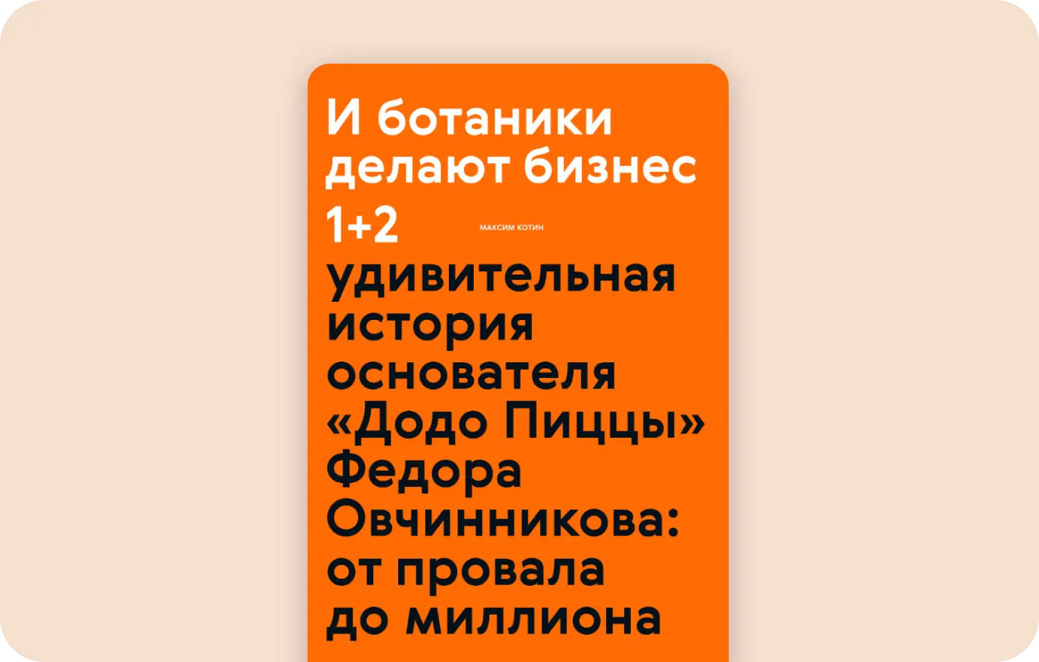 Автор Максим Котин взял за основу историю книжного магазина в Сыктывкаре, который открыл Федор Овчинников. В книге идет речь о том, как предприниматель, будучи далеким от бизнеса человеком, проходил все этапы проб и ошибок, проводил переговоры с партнерами и клиентами, но в итоге дело пришлось закрыть из-за соучредителей бизнеса. После первого неудачного опыта Федор не отчаялся, а попробовал создать бренд «Додо Пицца» и у него получилось, ведь сейчас это название знают в России, Республике Беларусь, Великобритании, Грузии и других странах.