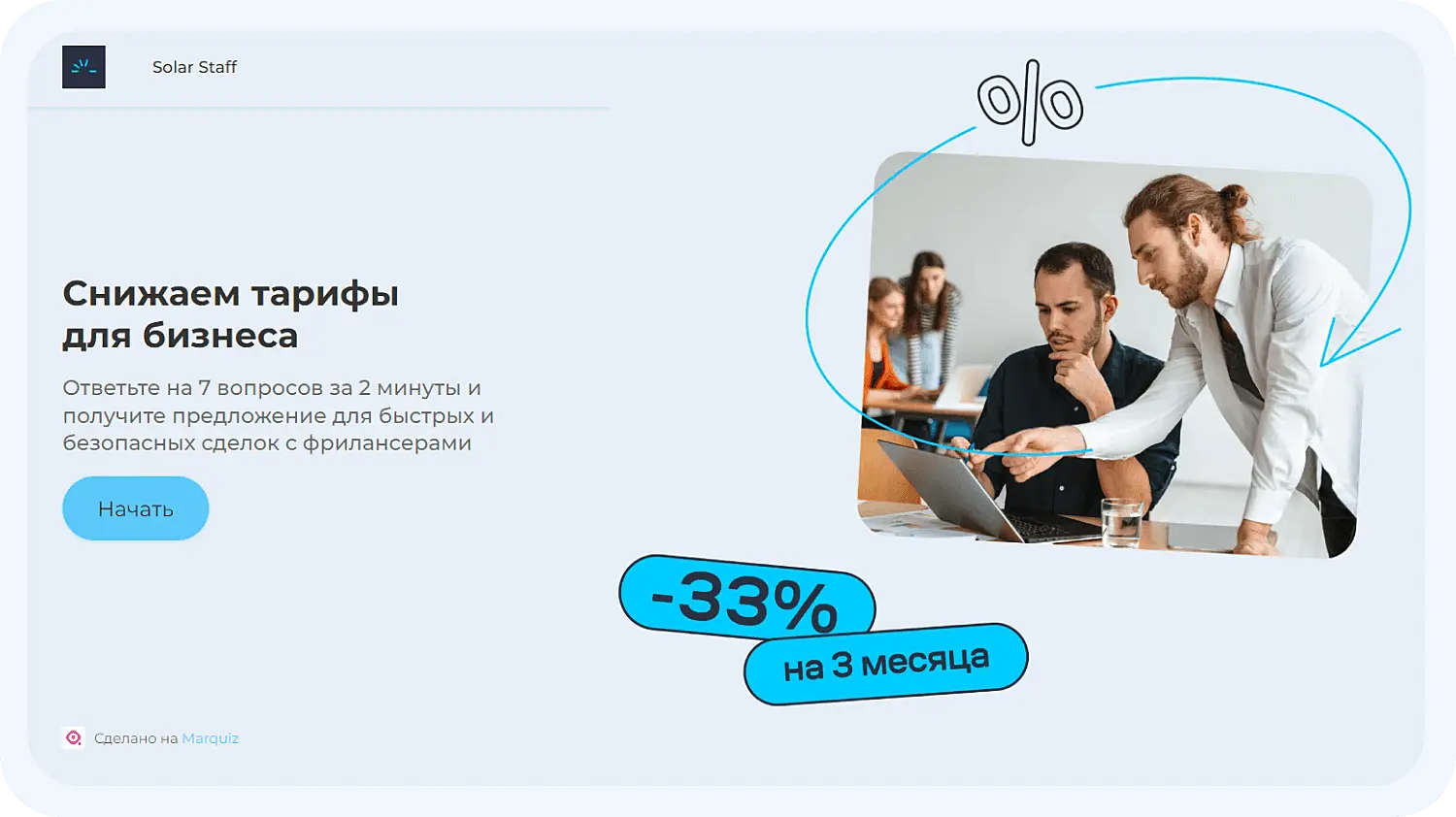 Так выглядит квиз от сервиса Marquiz на сайте Solar Staff: