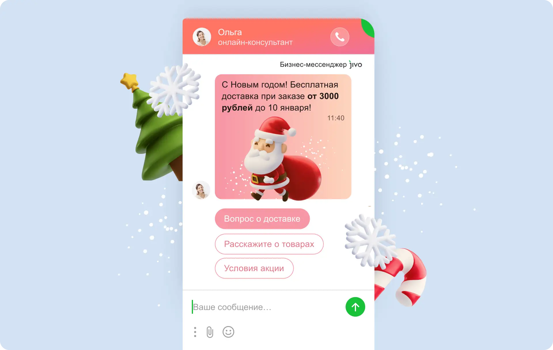 С новогодним столом мы конечно слегка перегнули. Провести время с родными и близкими без мыслей о работе — это святое. Для таких случаев в Jivo есть инструменты для автоматических ответов и сбора контактов потенциальных клиентов.