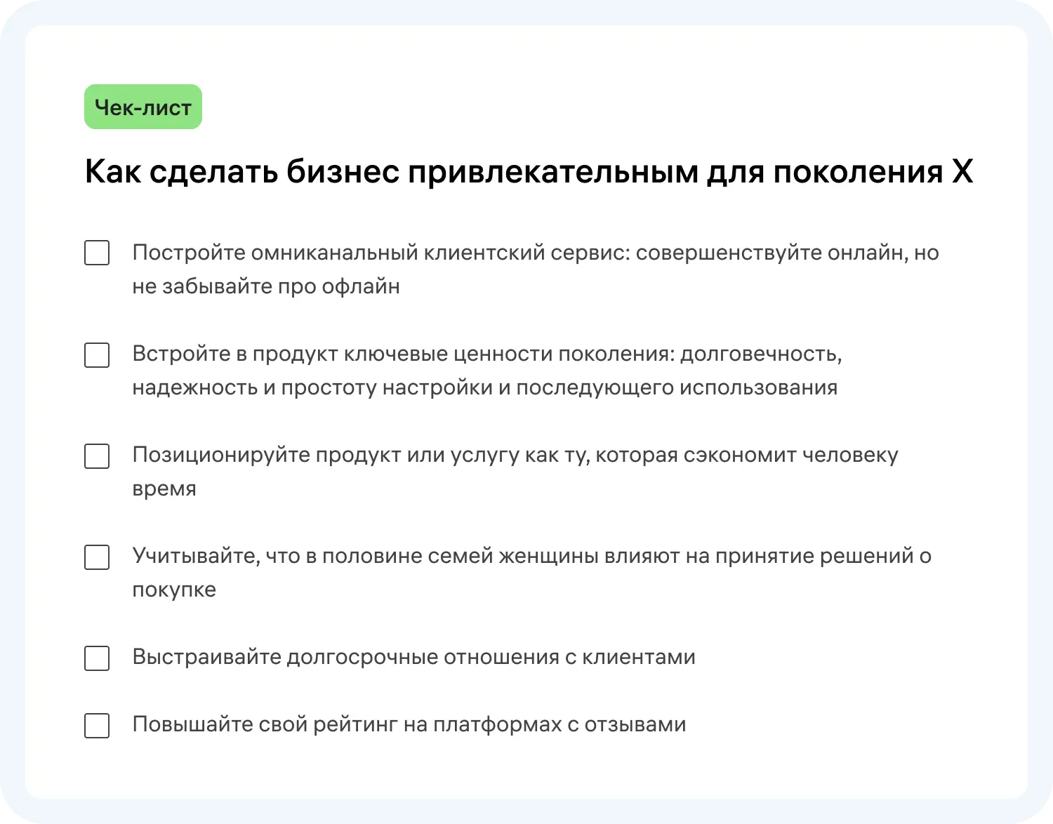 Завоевать сердца поколения Х получится, если у бренда есть постоянство и его продукт или услуга экономит время, деньги или силы.