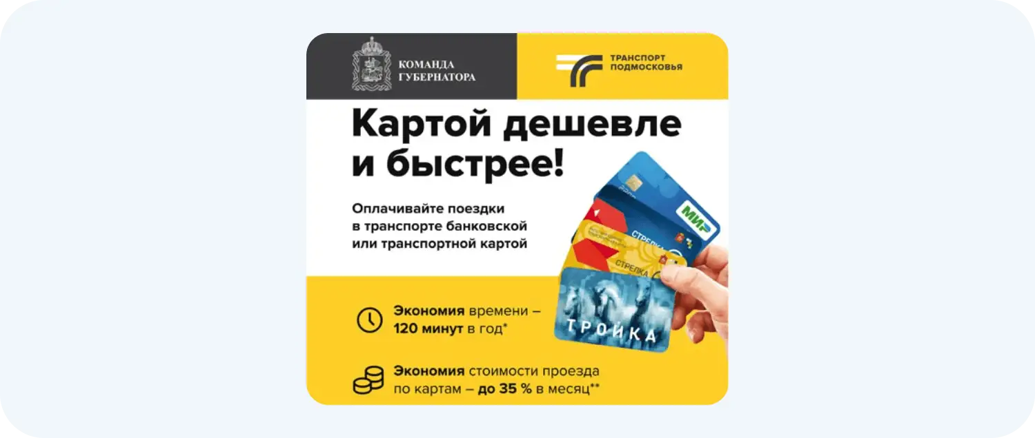 Вот пример донесения таких ценностей в рекламе подмосковного транспорта: