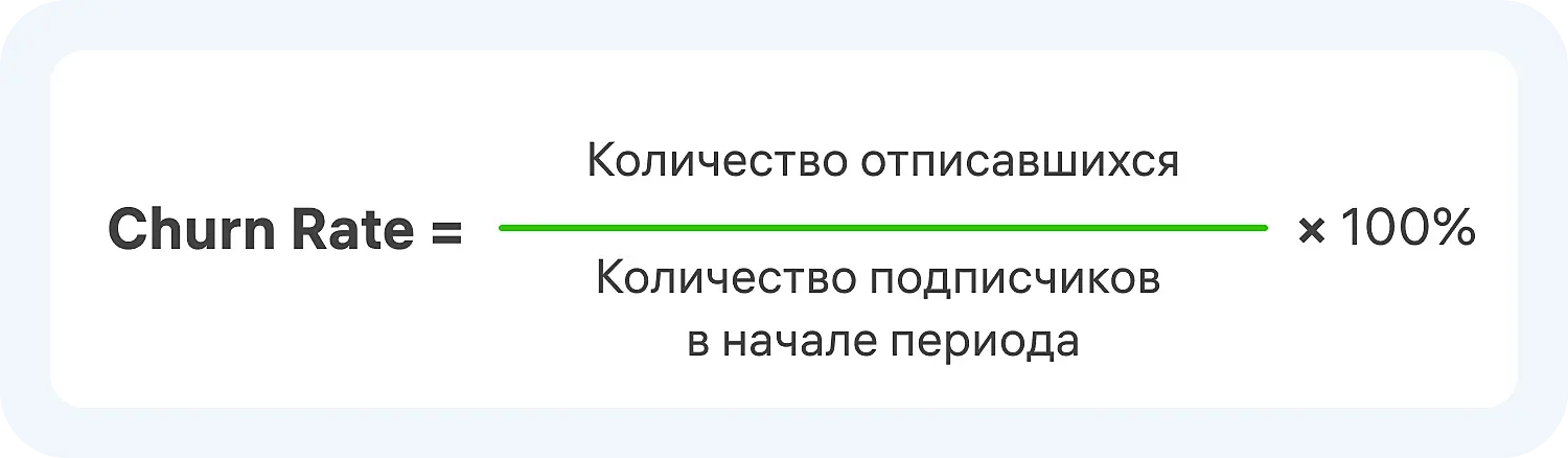 Churn Rate = (Количество отписавшихся/Количество подписчиков в начале периода) × 100%