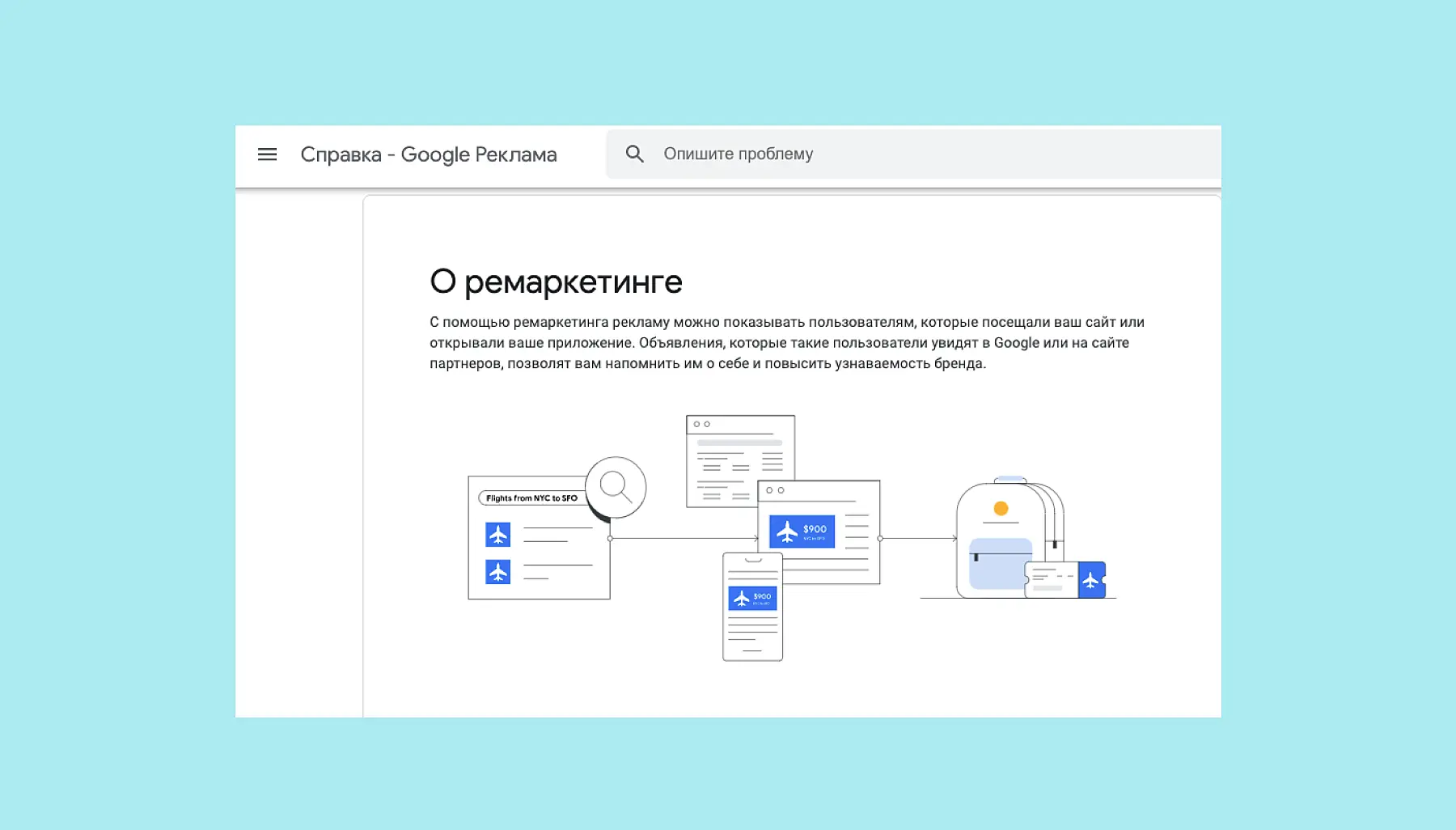 Ремаркетинг у Гугла: «С помощью ремаркетинга рекламу можно показывать пользователям, которые посещали ваш сайт или открывали ваше приложение».
