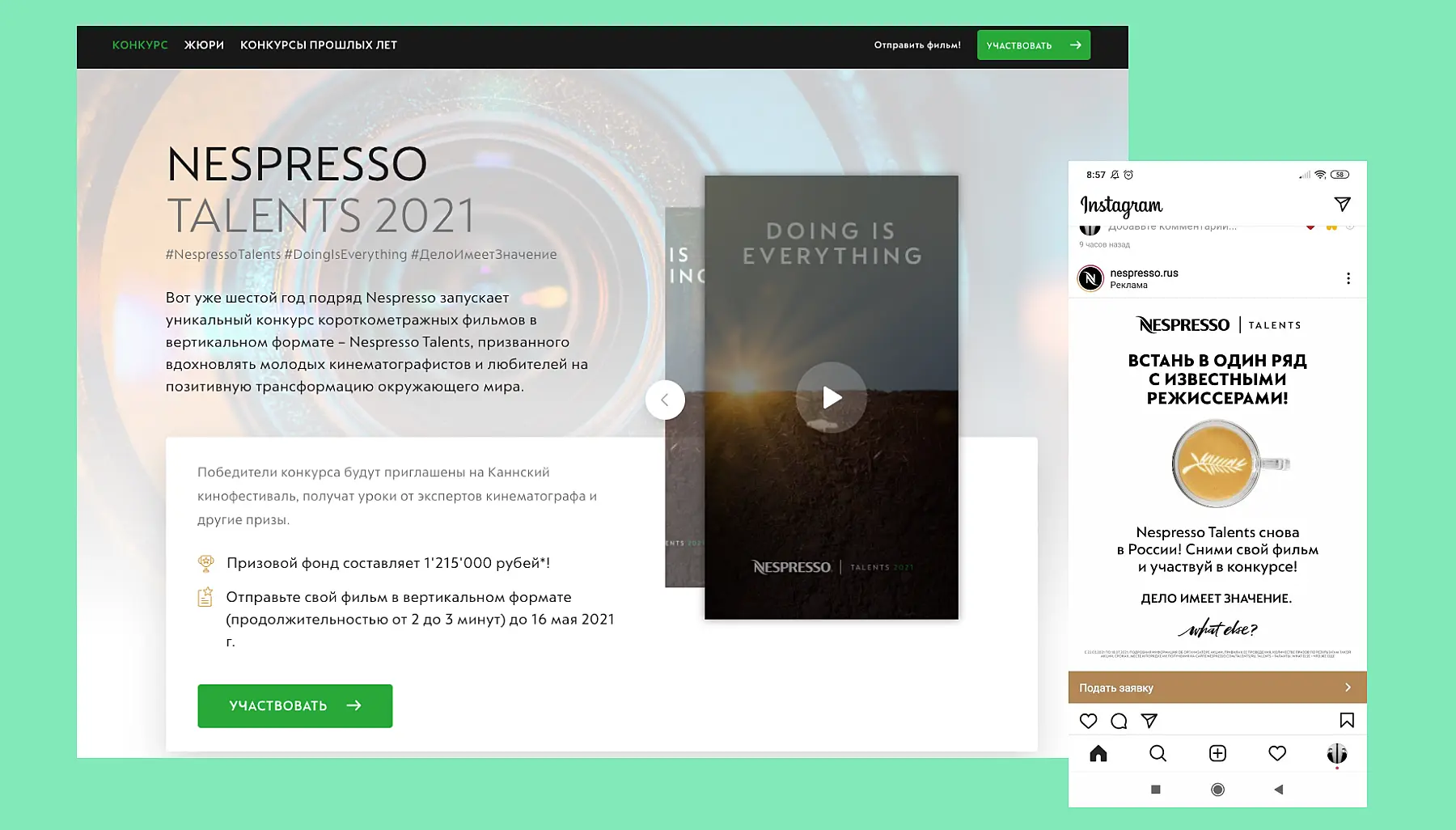 Недавно я зашел на сайт конкурса короткометражного кино, который проводит Неспрессо. На следующий день я вижу рекламу этого конкурса в __. Так работает ретаргетинг.