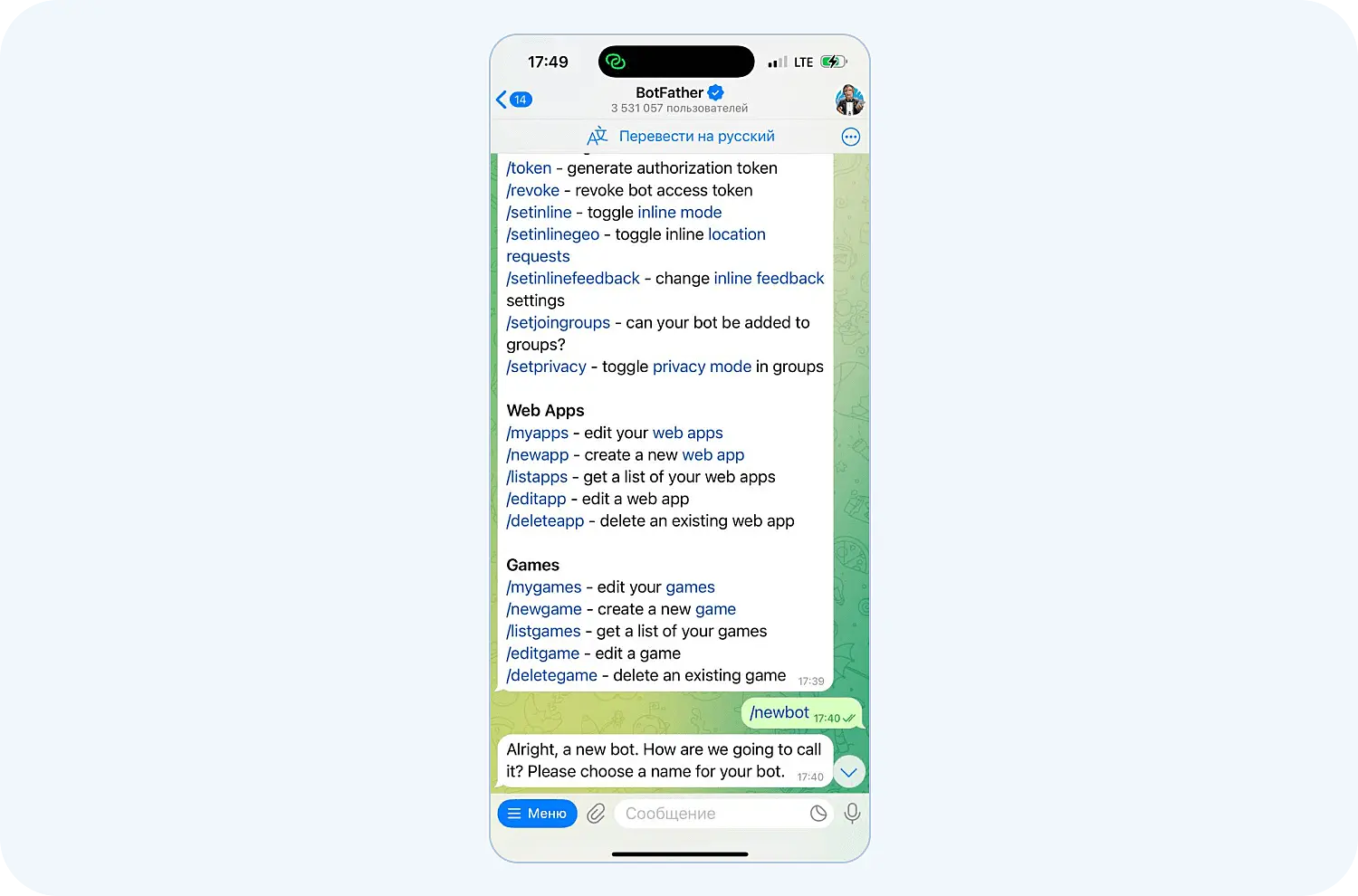 Как сделать бота в Телеграм с помощью BotFather