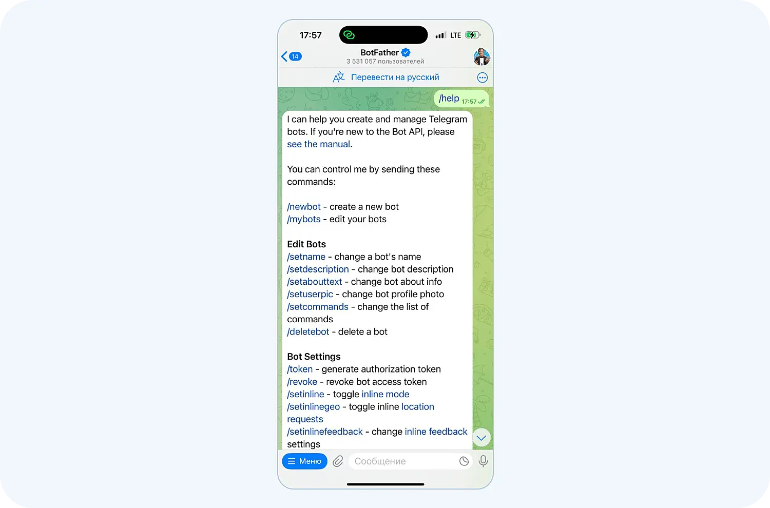 Как отредактировать бота в Телеграм с помощью BotFather