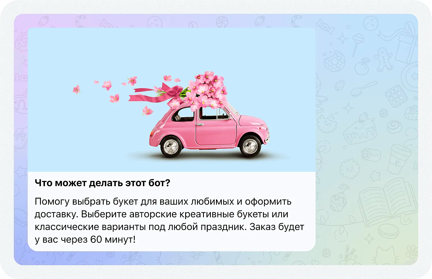 Не путайте эту команду с созданием аватарки, изображение появляется только перед запуском бота в Телеграм: