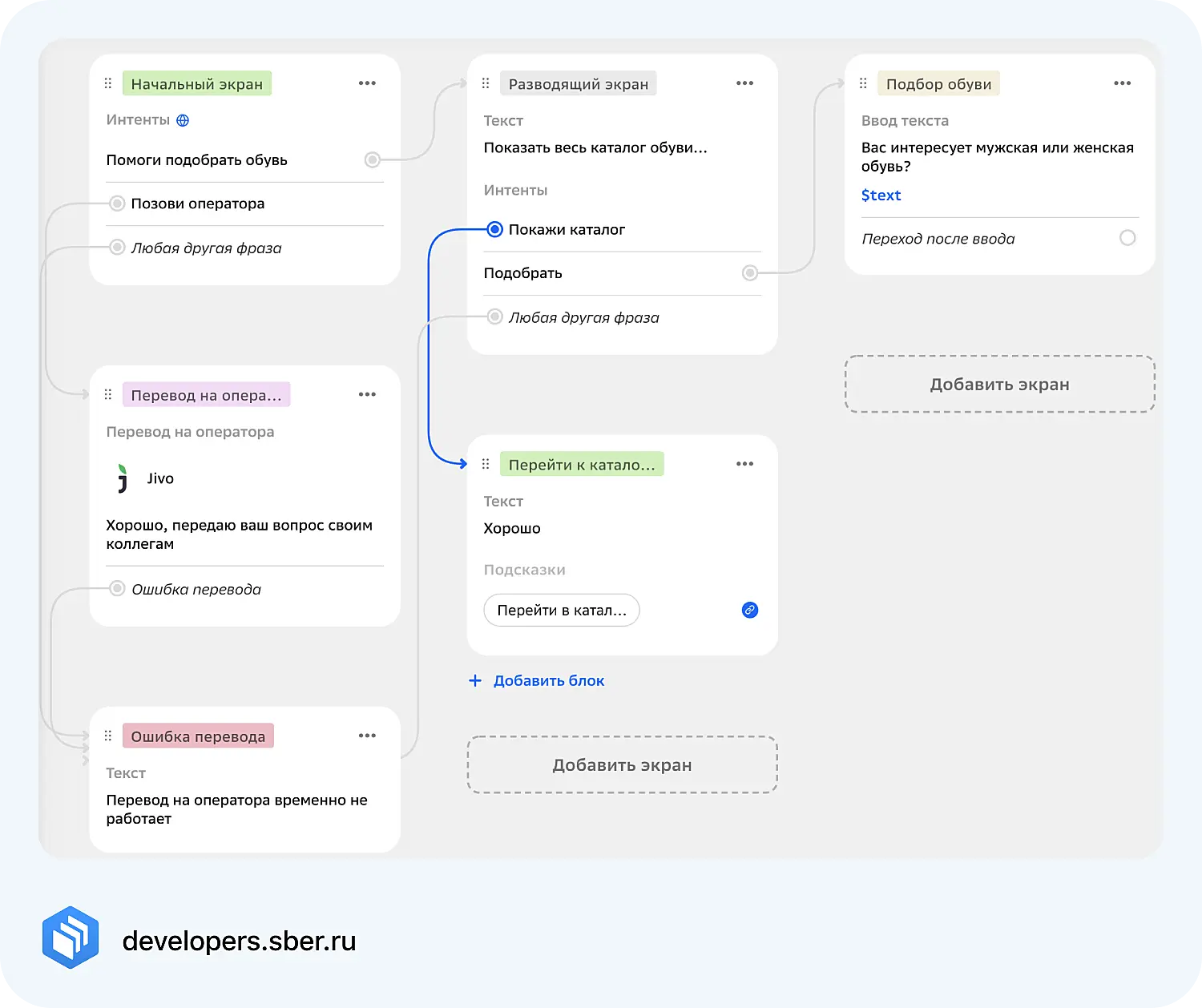 - Постройте детальный сценарий чат-бота с помощью SaluteBot или других сервисов.