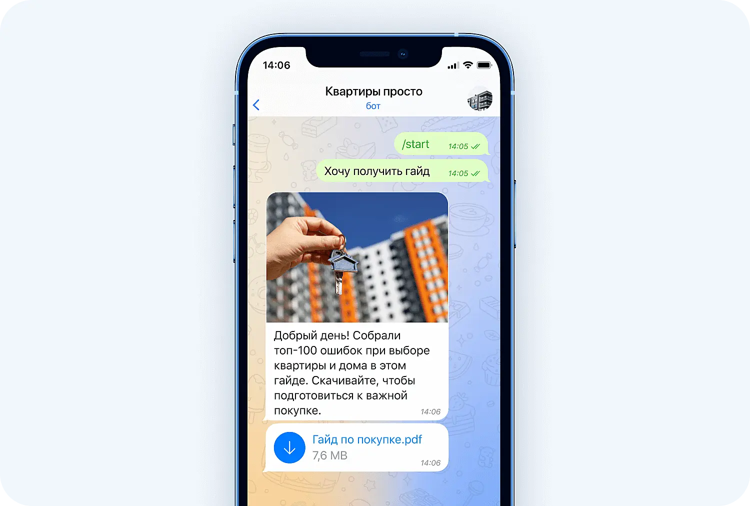 Затем отправить лид-магнит через бота в Телеграм: