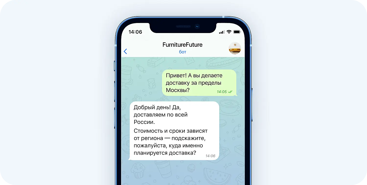 1. Поддержка клиентов. Бот для Телеграм отвечает на частые вопросы пользователей о товаре или услуге: