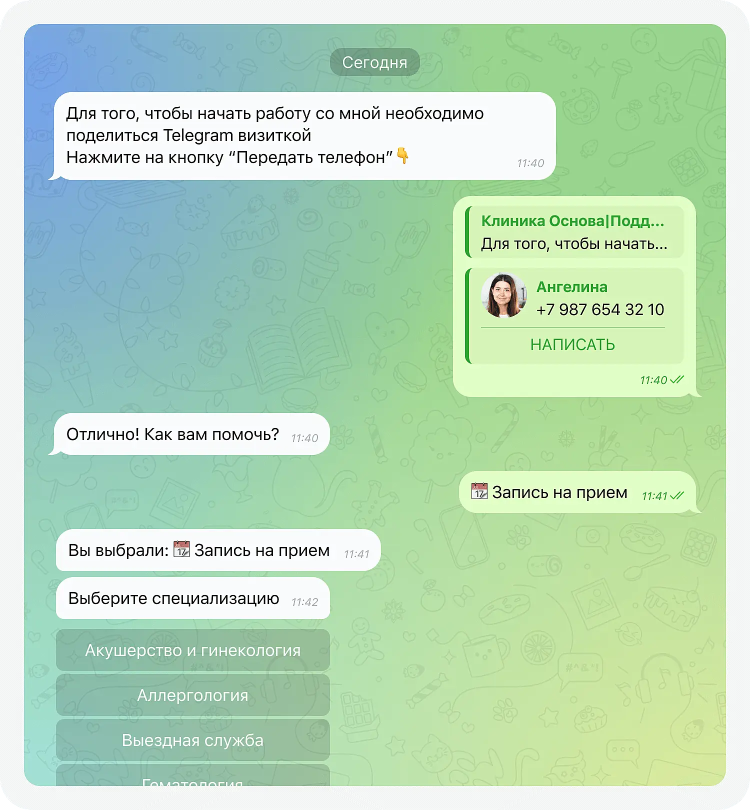 7. Запись и бронирование. Бот для Телеграм автоматически запишет клиента на услугу в салон красоты или клинику: