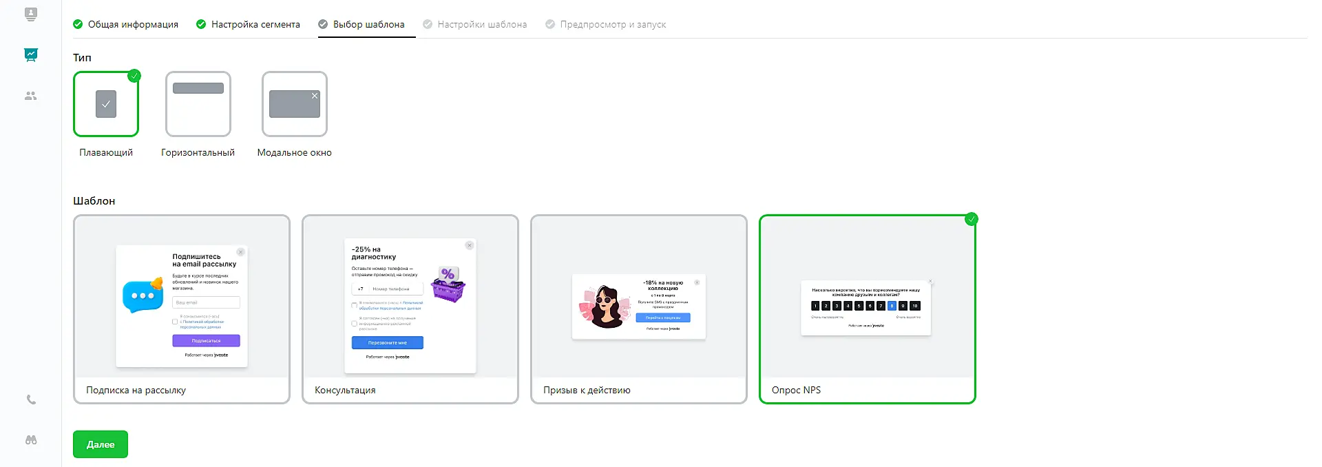 - В открывшейся галерее шаблонов выберите Опрос NPS