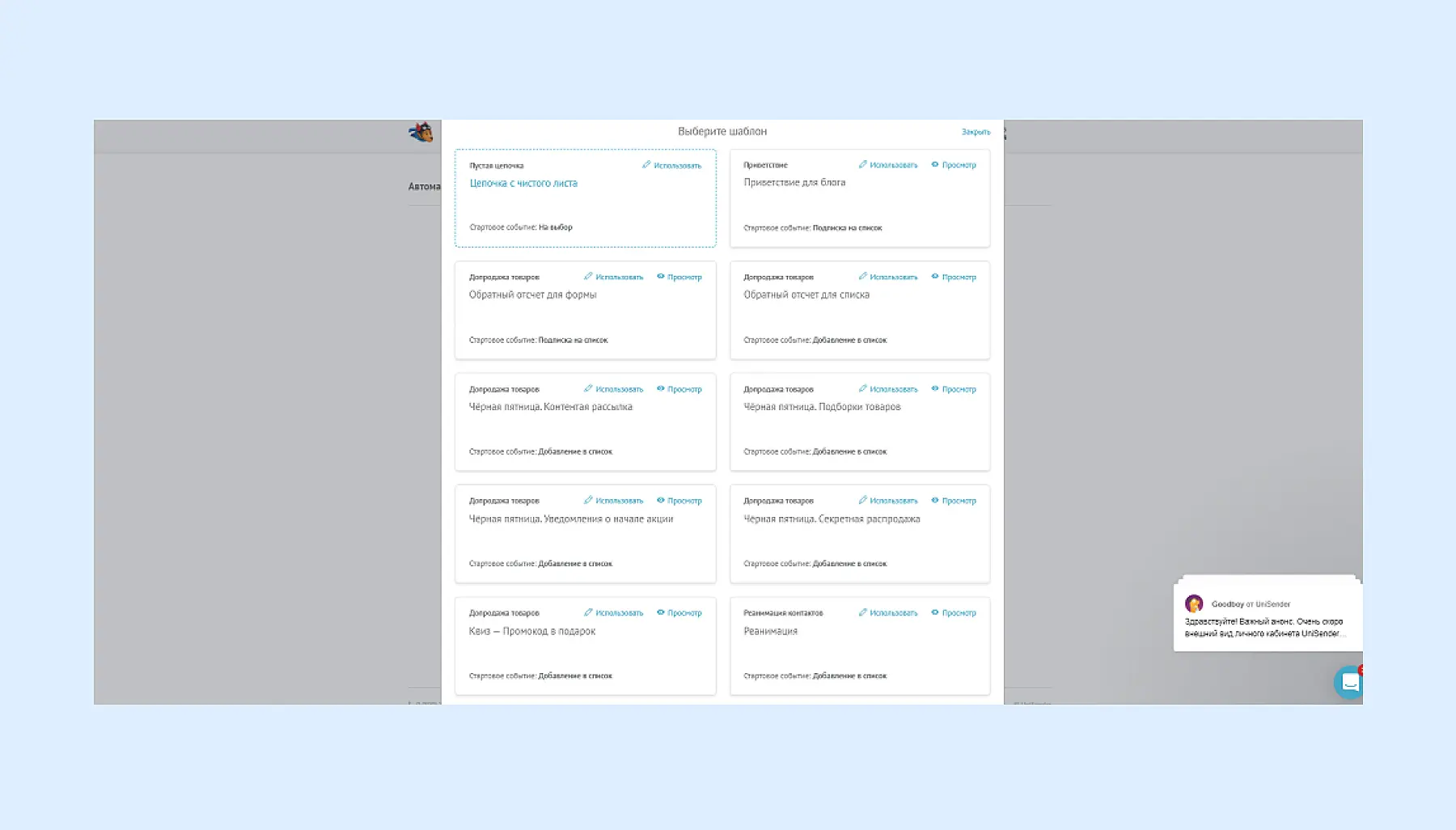 Настройка возможна в разделе «Автоматизация» в Личном кабинете. Если будете готовить рассылку впервые, то загляните для начала в «Гайд по рассылкам». Все это можно попробовать бесплатно (100 контактов – до 1500 писем).