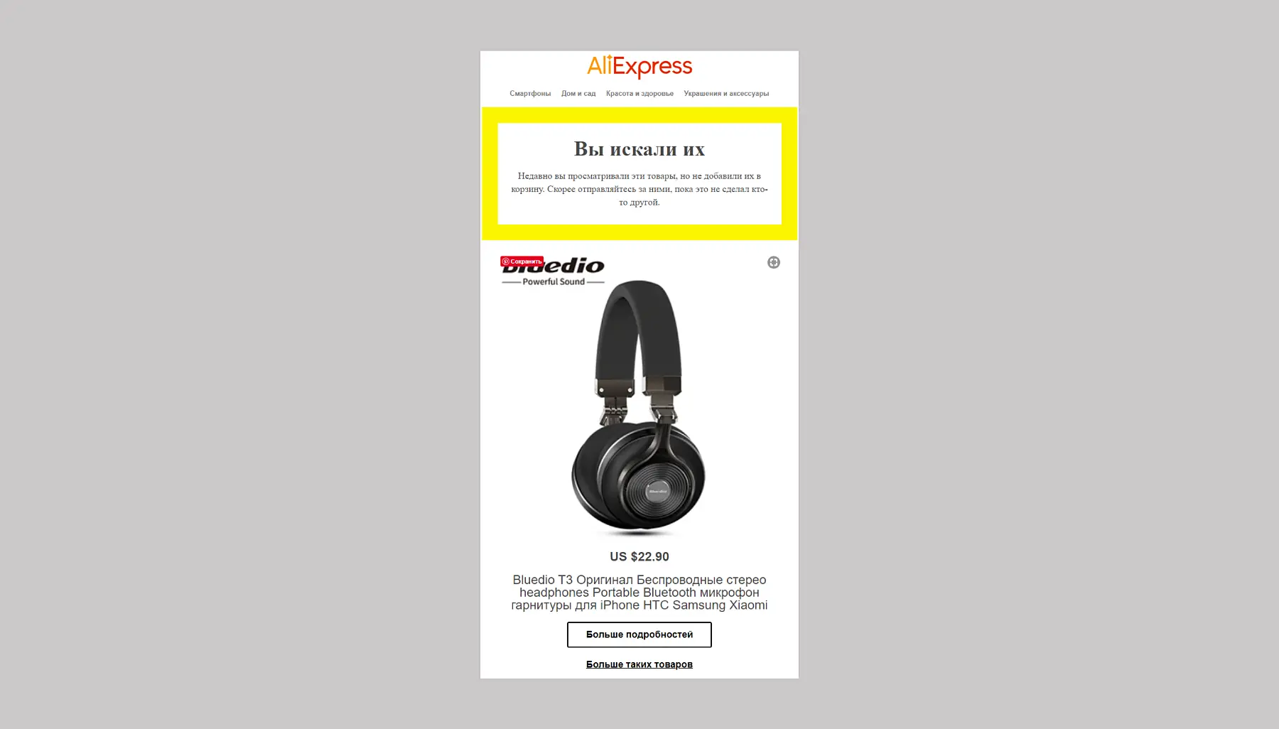 - товара нет в наличии. Если был просмотрен товар, которого не было в наличии, но он появился на складе, то стоит отправить информацию об этом пользователю. Также есть вариант – отправить ему похожие товары из данной категории;