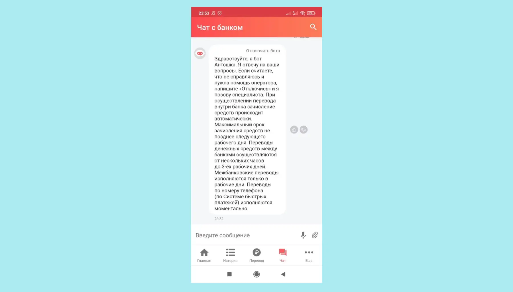 В чате бот, а делает вид, что он человек. Это собьёт клиента с толку, он может запутаться и рассердиться, что ему отвечают шаблонами, а на запрос не дают внятный ответ. Лучше сразу предупредить клиента, что это бот, а не оператор — как делает банк «Дело».