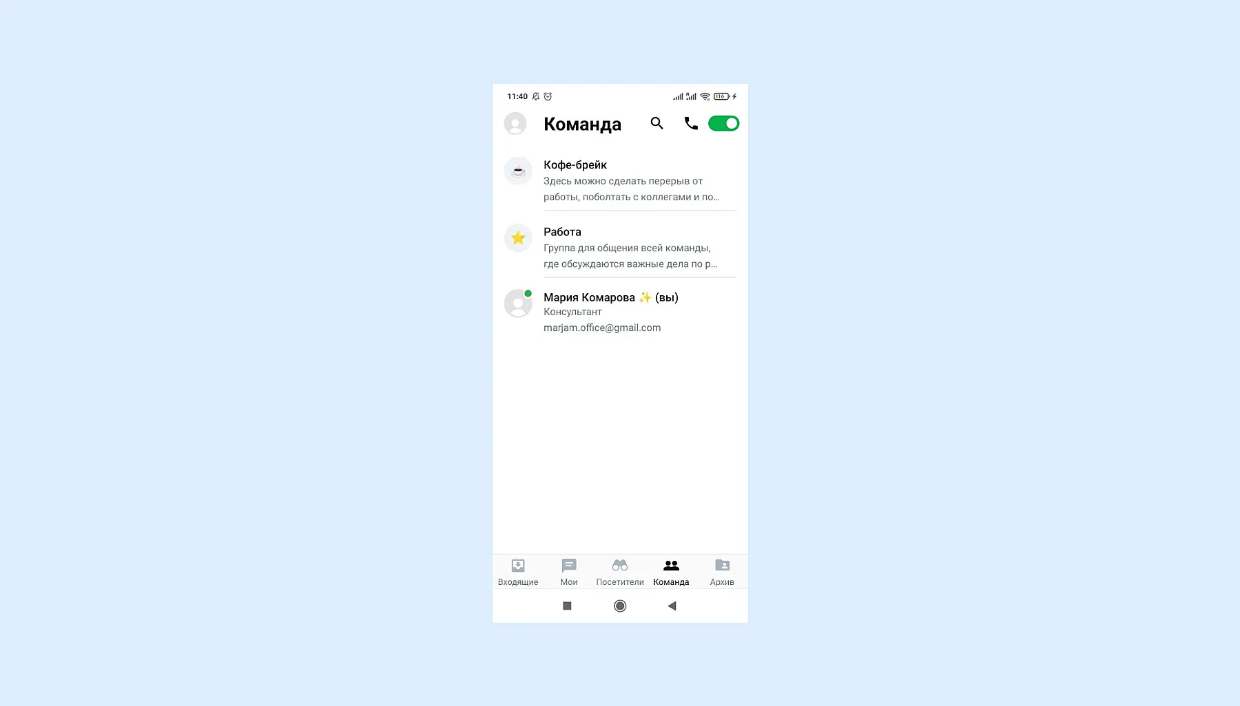 В небольших бизнесах, когда руководитель сам отвечает на вопросы в чате, он берёт на себя и другие функции: логистику, аренду, юридические вопросы, собеседования. Поэтому он должен быть мобильным. Например, если вы отошли, а к вам приехал посетитель, то он может прямо в заведении написать вам в чат, а вы тут же отреагируете.