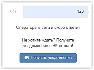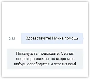 Появляется в чате в виде системного сообщения, если клиент написал в чат, а операторы указанное время не принимают запрос диалога.