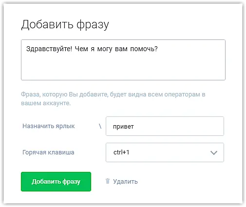 Общие быстрые фразы - для всех операторов аккаунта.