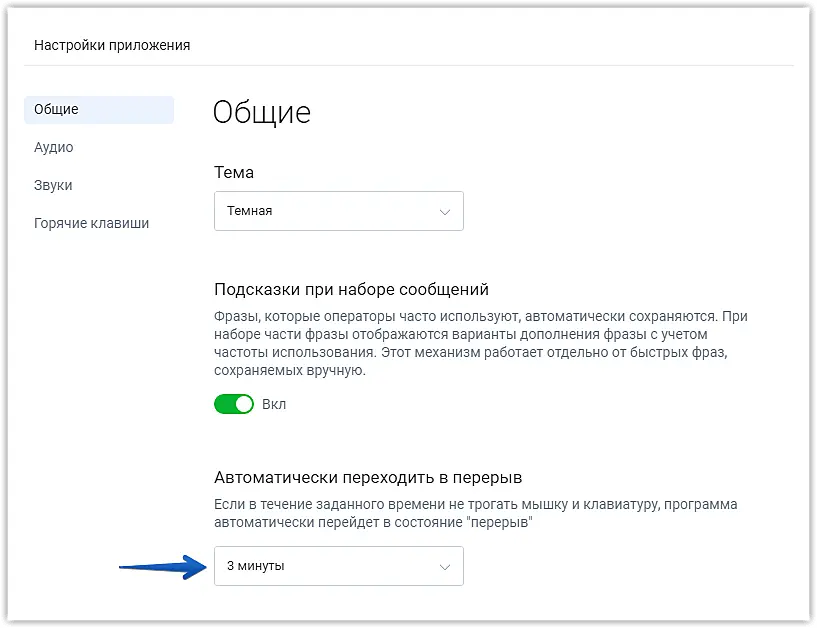 - Настройте автоматический переход в перерыв в приложении у операторов.