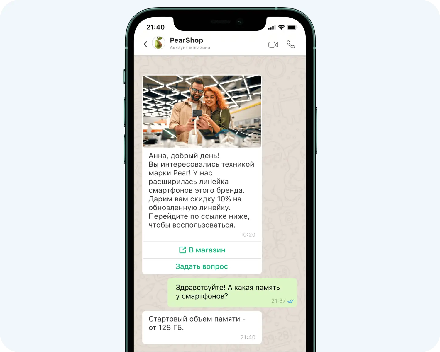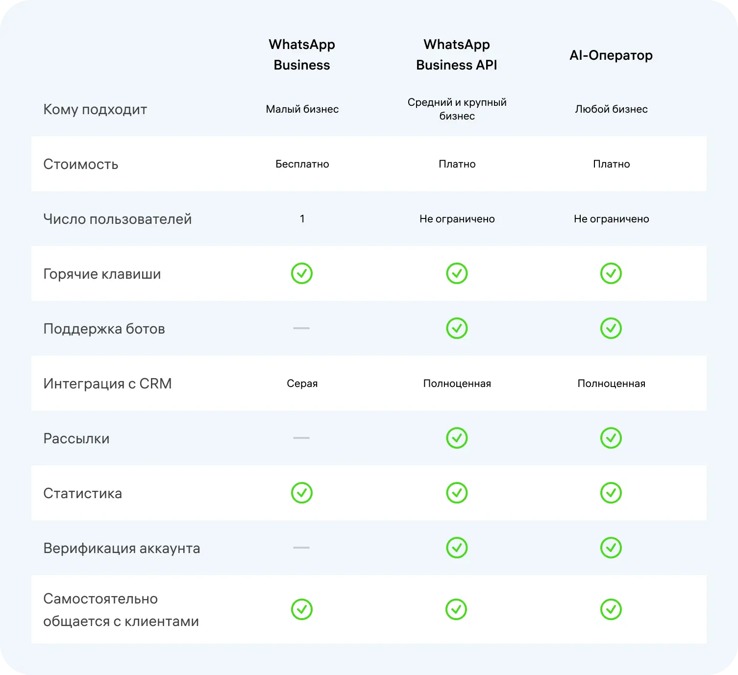 WhatsApp Business API дает более широкие возможности для бизнеса по сравнению с WhatsApp Business. Вот некоторые из них: