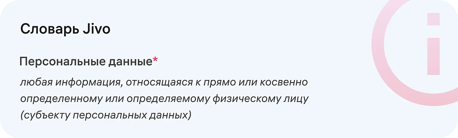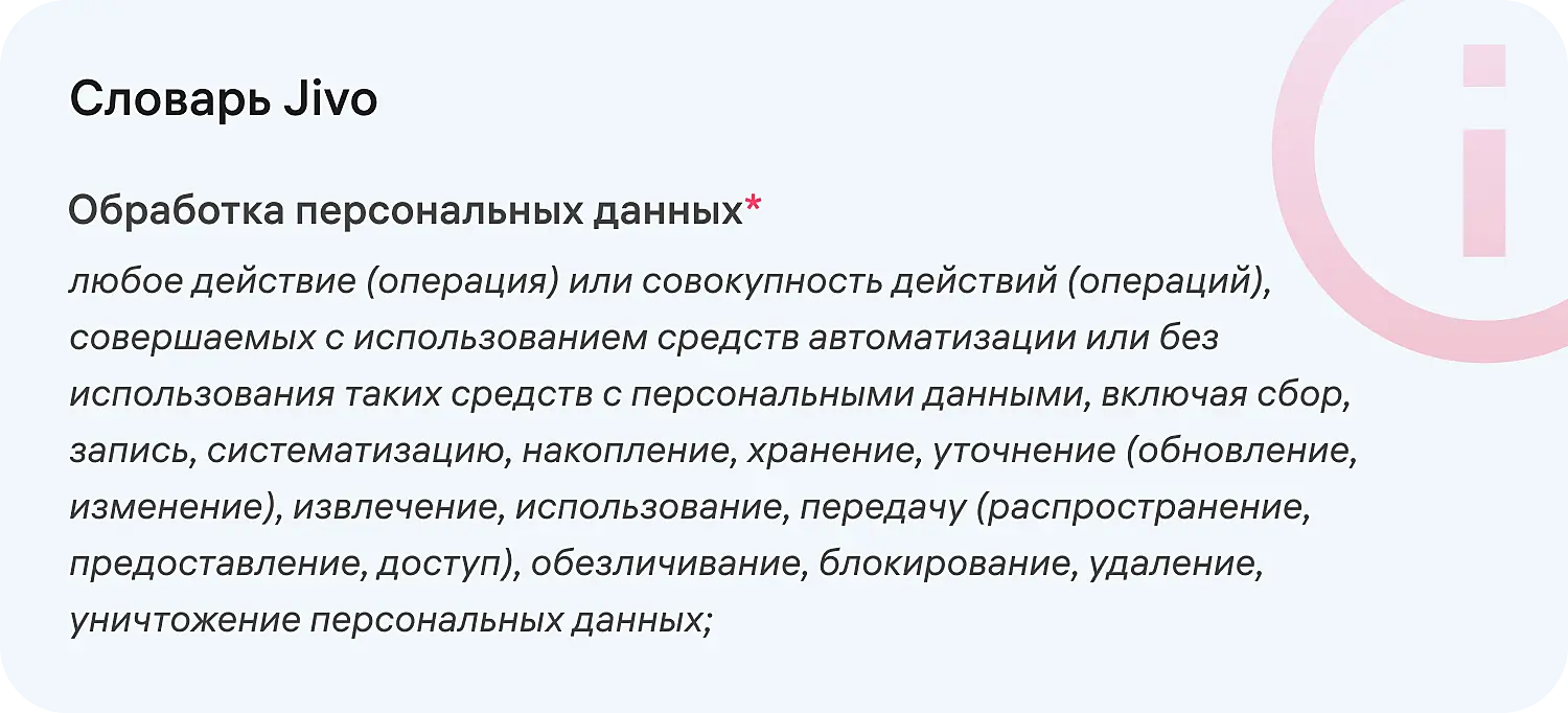 - Описание условий, при которых вы работаете с пользовательской информацией