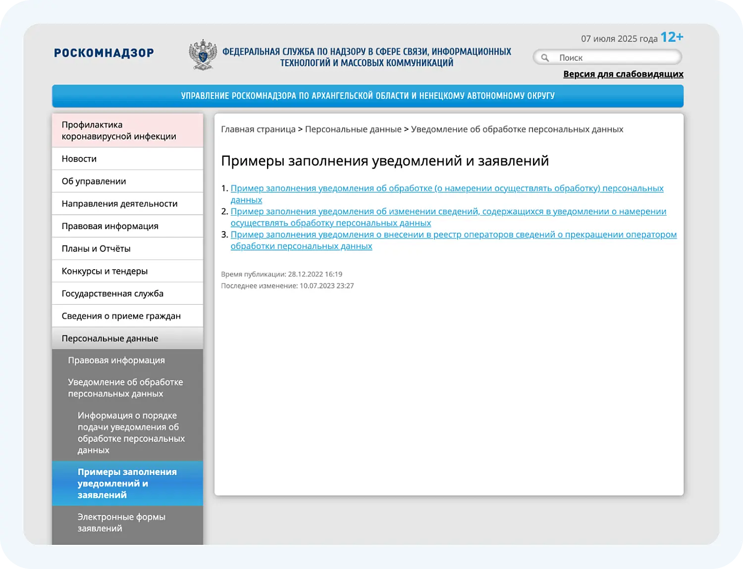 Когда вся документация подготовлена, а бизнес-процессы по работе с клиентской информацией продуманы, можно сообщить в контролирующий орган о начале обработки персональных данных. Направить заявление возможно физически или онлайн через Госуслуги.