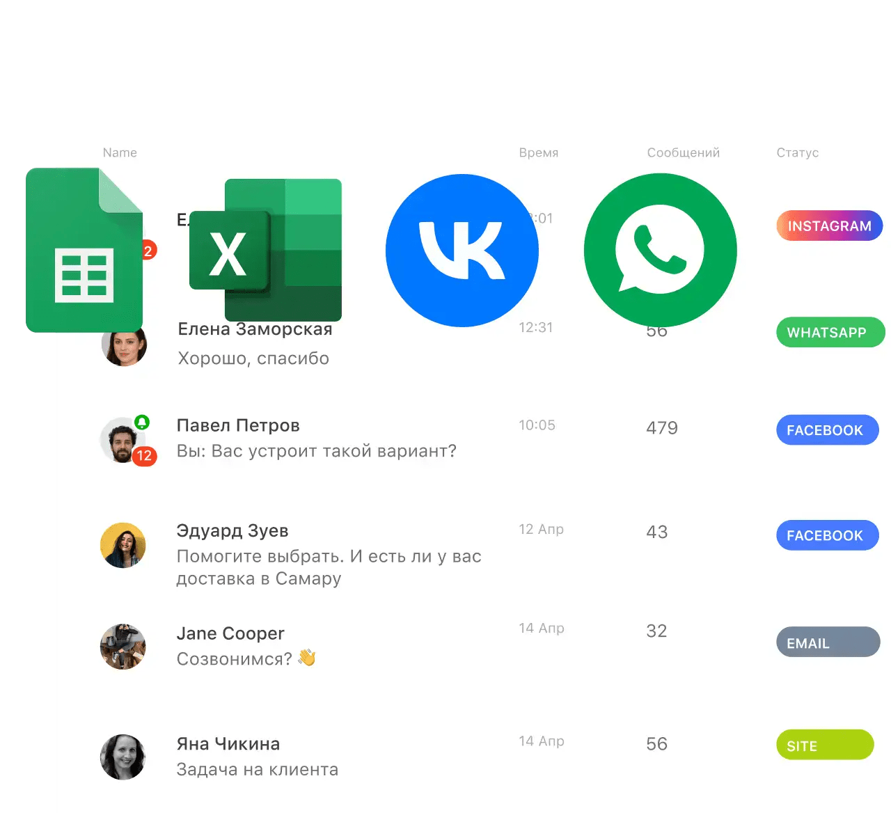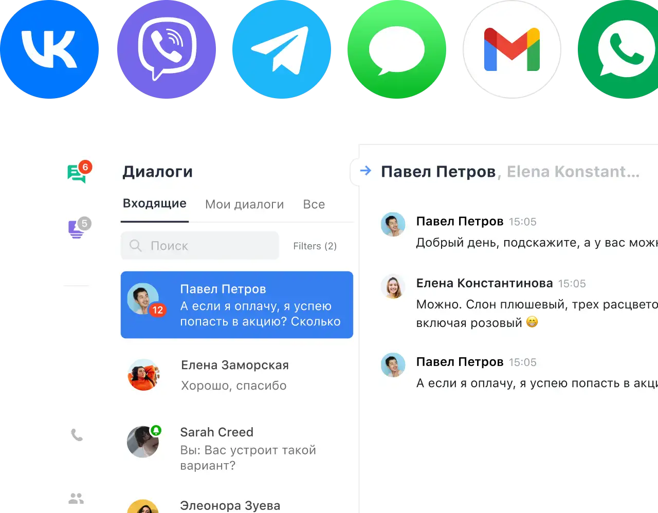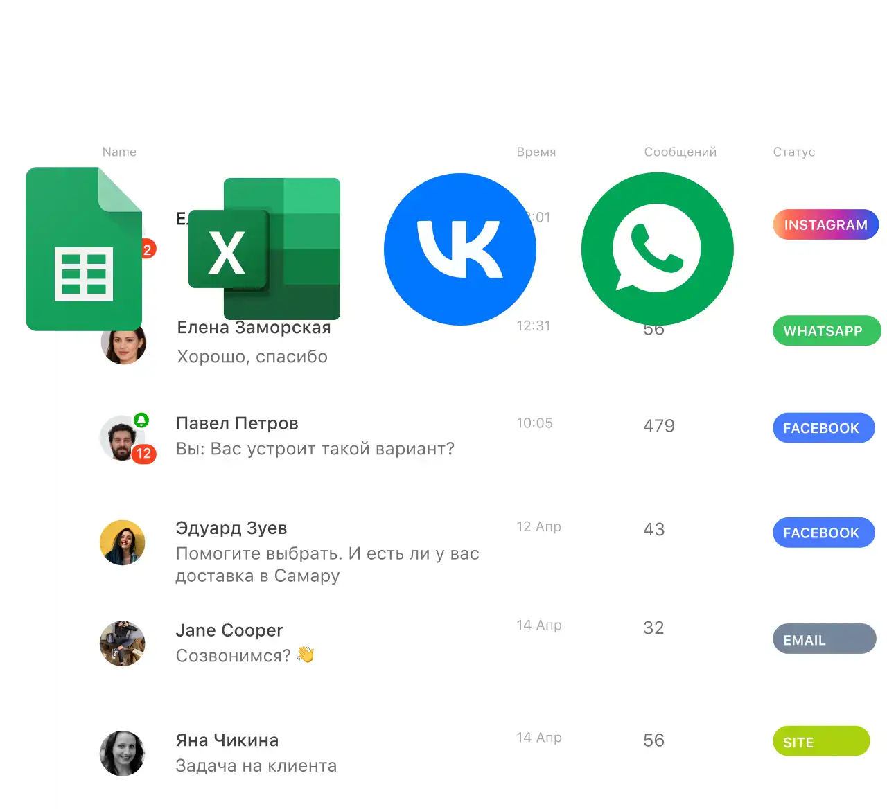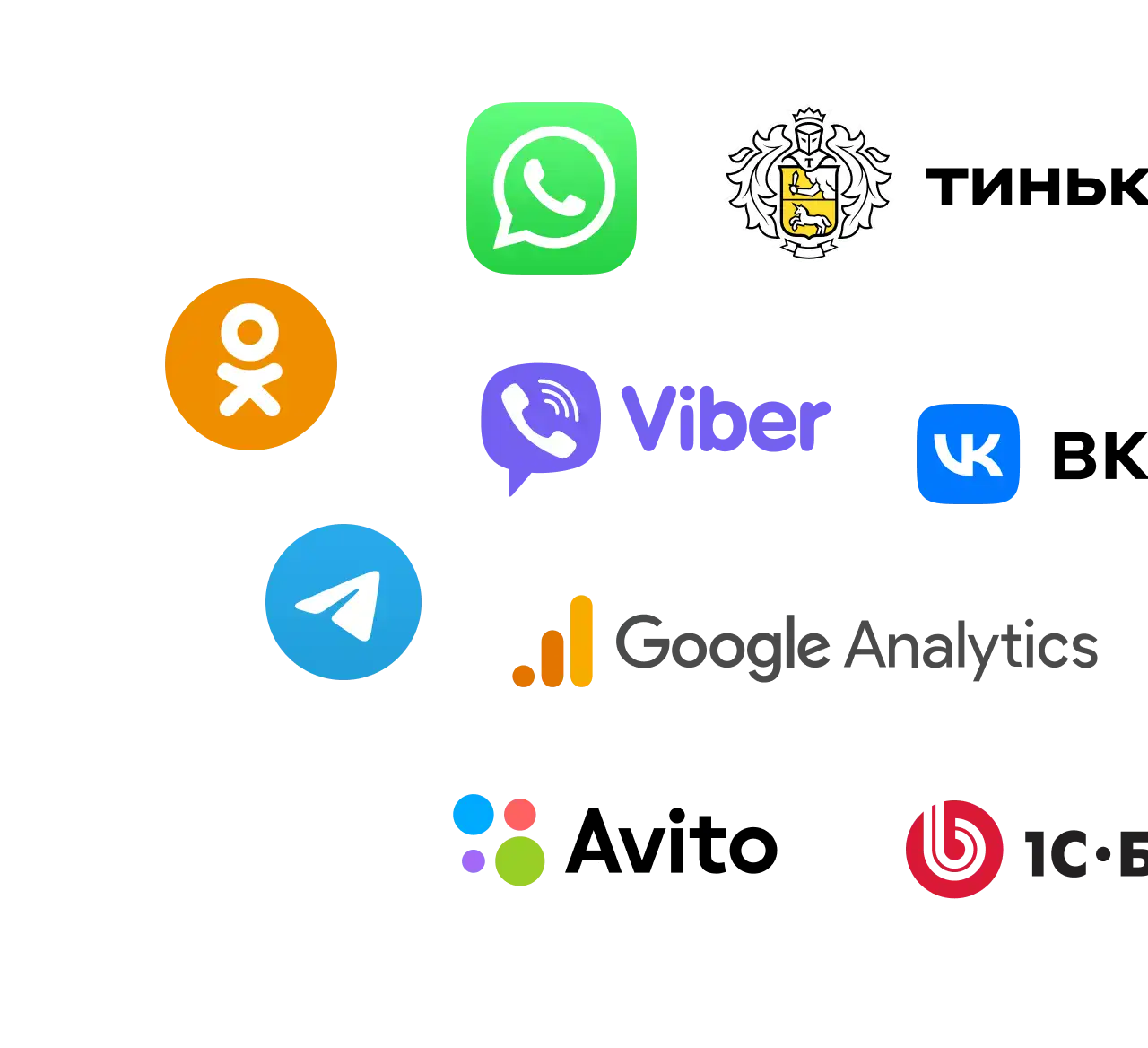 Интегрируйте Jivo CRM с нужными мессенджерами, соцсетями, платежными системами или торговыми площадками без доплат и комиссий.