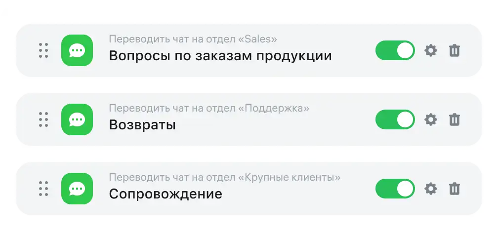 Все клиентские обращения распределяются на отдел или конкретного оператора согласно правилам маршрутизации.