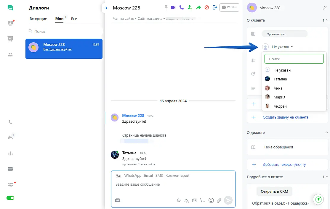 Подробнее о возможностях распределения диалогов вы можете прочитать в статье "Маршрутизация чатов"